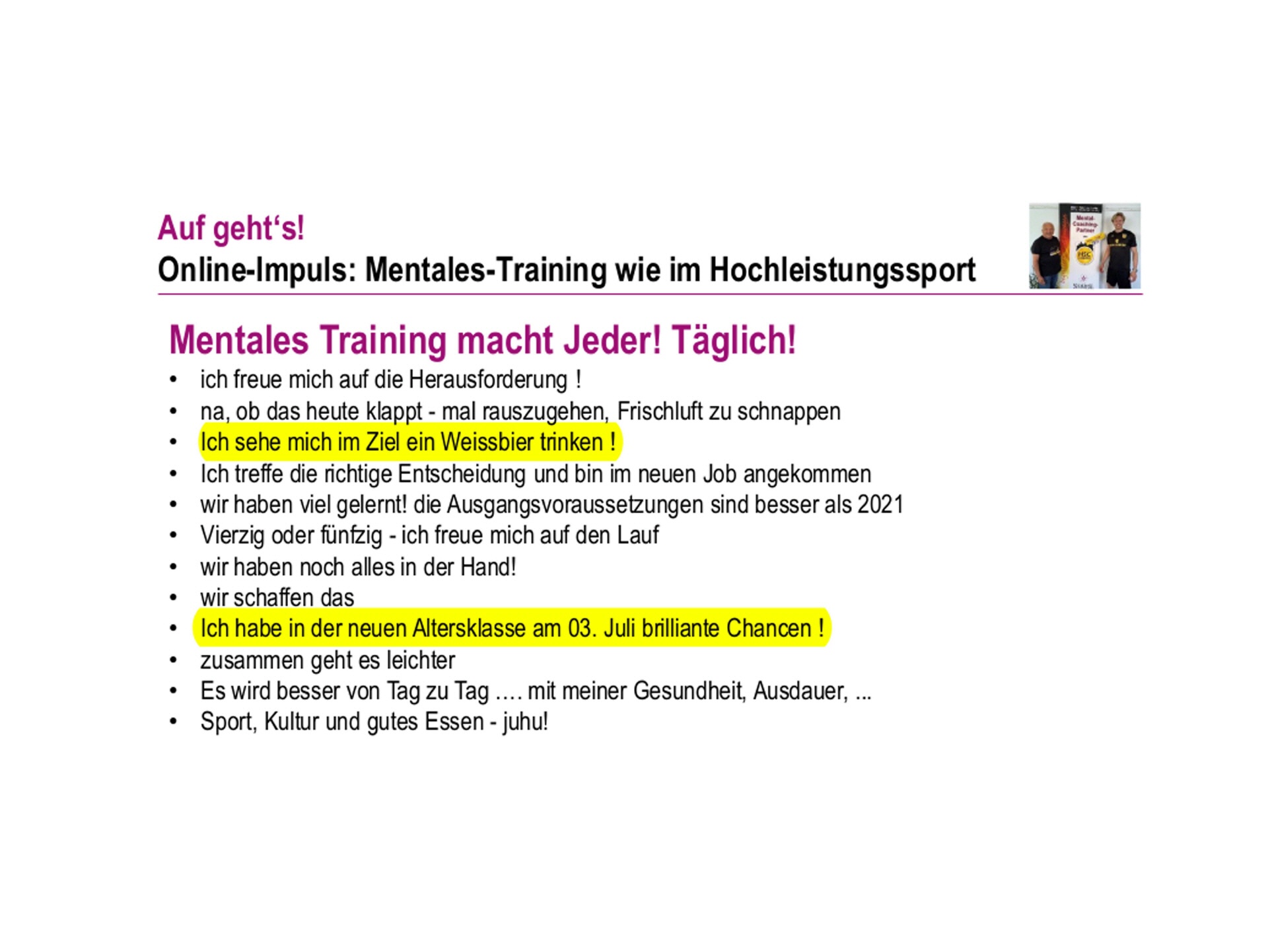 gerne sende ich Dir mein Feedback zu unseren 2,5 Tagen Online-Seminar letzte Woche:
