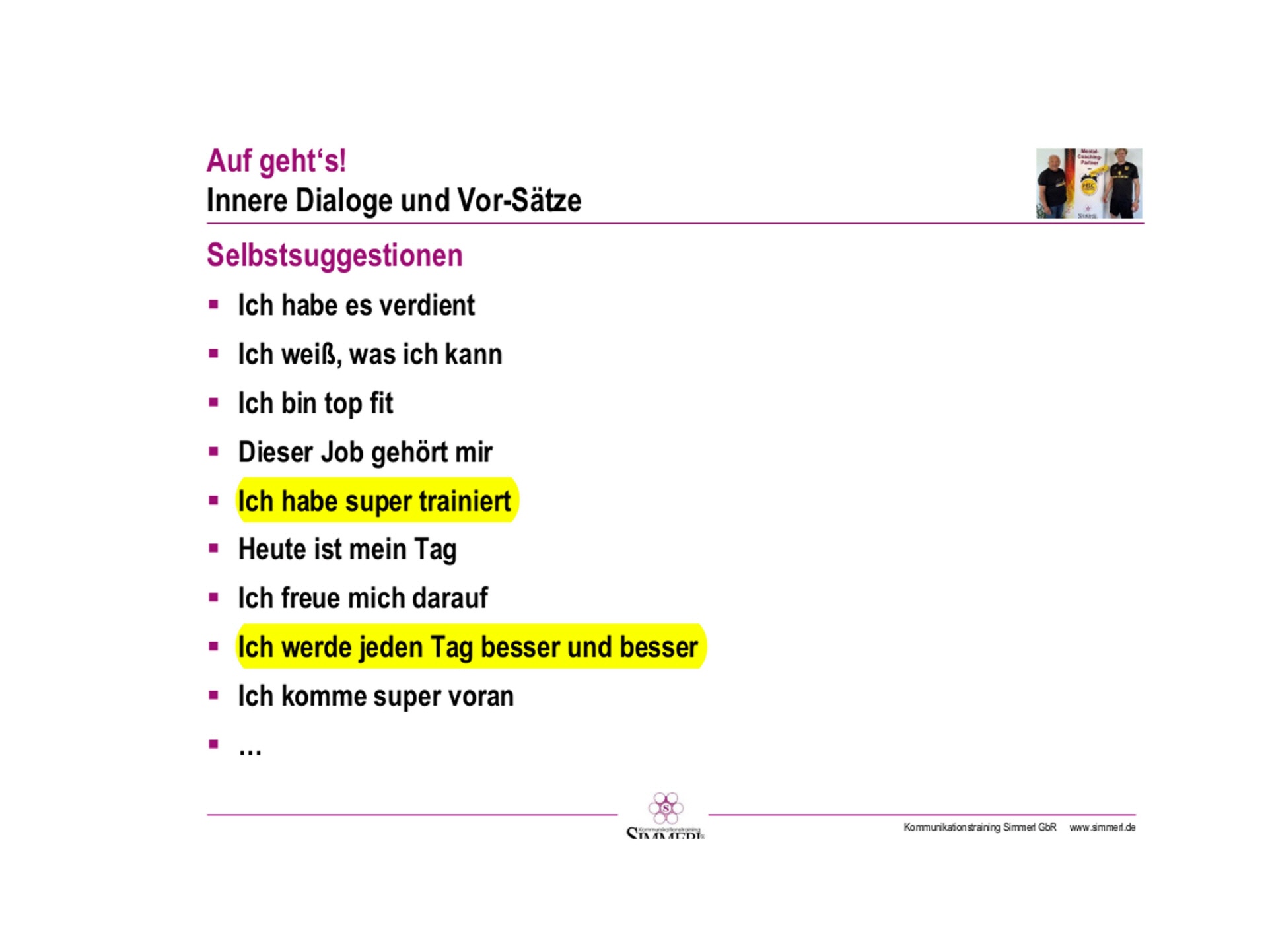 Insgesamt eine sehr ausgewogene, für Simmerl-Seminare typische, Mischung aus Theorieteilen und sofort anschließendem praktischen Anwenden.